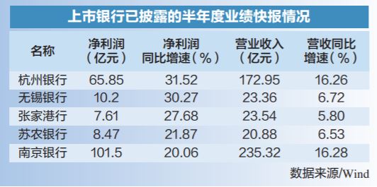 不過,銀行業(yè)半年報(bào)的“預(yù)熱”已經(jīng)開始。截至目前,有5家中小上市銀行已經(jīng)公布了業(yè)績快報(bào),凈利潤同比增速均在20%以上。