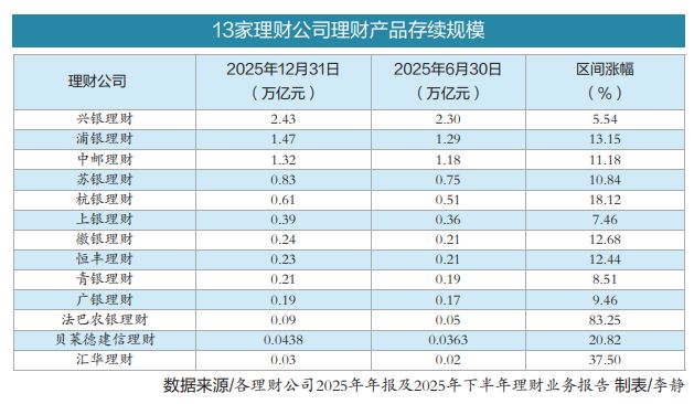 13家理財公司披露2025年成績單 規(guī)模全部正增長