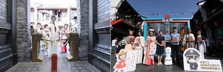 這場投壺游戲只是整場清河坊街平安嘉年華活動(以下簡稱“嘉年華活動”)的一個精彩瞬間。在清河坊街區(qū)道路的這頭,國信證券投資者教育基地的智能機器人小信正在配合公安民警進行巡防,維護街區(qū)治安秩序;在道路那頭,不少人正圍在一起,互相分享防騙金融知識,進行掃碼答題……古代街區(qū)與現(xiàn)代科技的結(jié)合、傳統(tǒng)歷史文化與平安建設(shè)的結(jié)合,構(gòu)成了一幅幅嘉年華活動的生動畫卷。