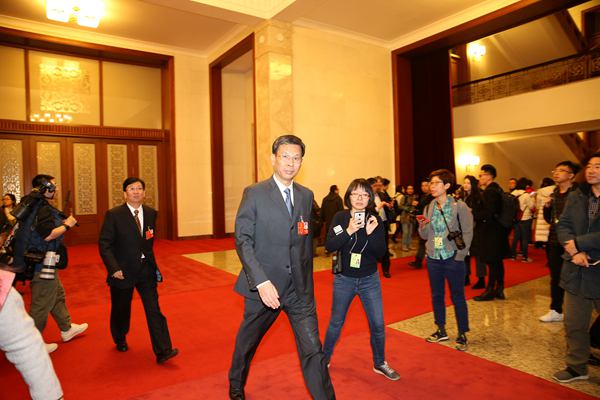 財政部部長劉昆被記者圍堵 車亮 攝