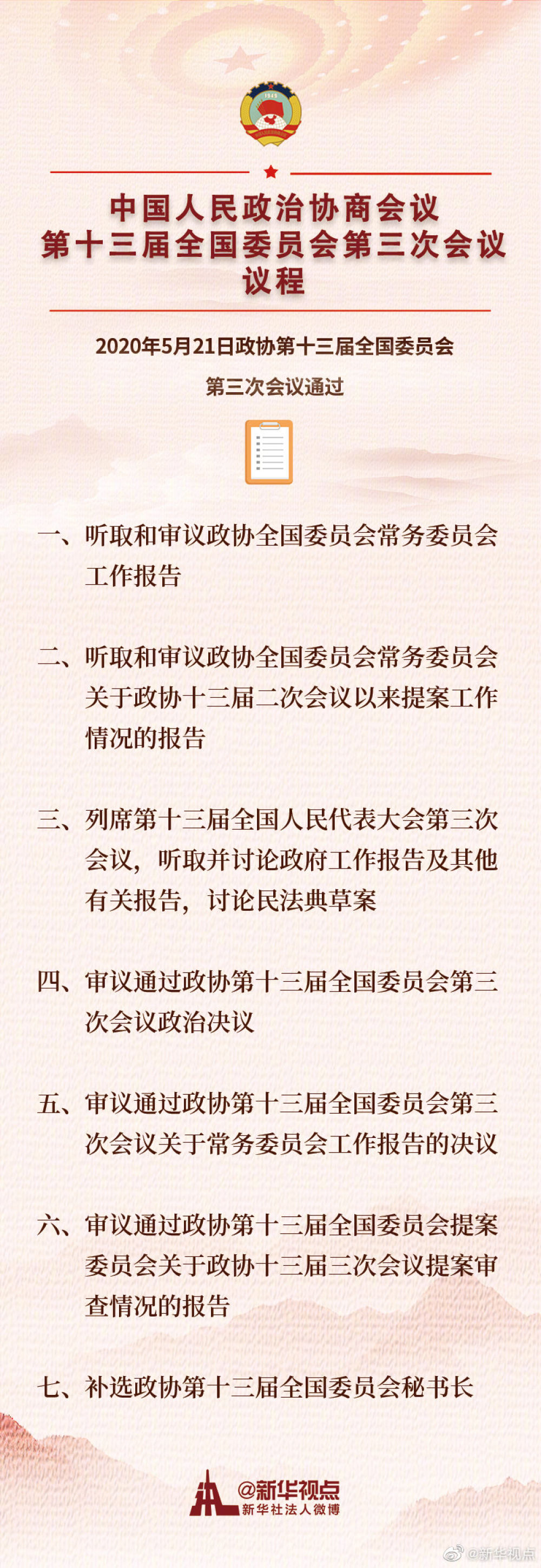 【中國人民政治協(xié)商會(huì)議第十三屆全國委員會(huì)第三次會(huì)議議程】詳情請(qǐng)看↓