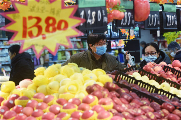 1月11日,顧客在杭州一家超市選購(gòu)水果。新華社發(fā)(龍巍 攝)
