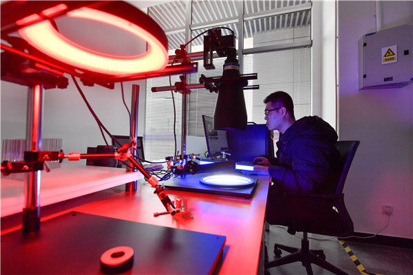 2月24日,在清華大學(xué)天津高端裝備研究院復(fù)合制造與智能識(shí)別研究所,工程師在測(cè)試智能識(shí)別光學(xué)系統(tǒng)。新華社發(fā)(孫凡越 攝)