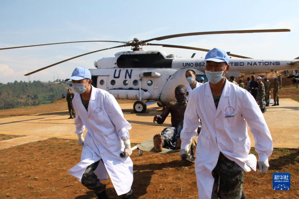 2010年7月3日,中國赴剛果(金)維和醫(yī)療分隊醫(yī)護(hù)人員在剛果(金)南基伍省布卡武機(jī)場運(yùn)送油罐車爆炸中的受傷者。新華社發(fā)(郭云飛攝)