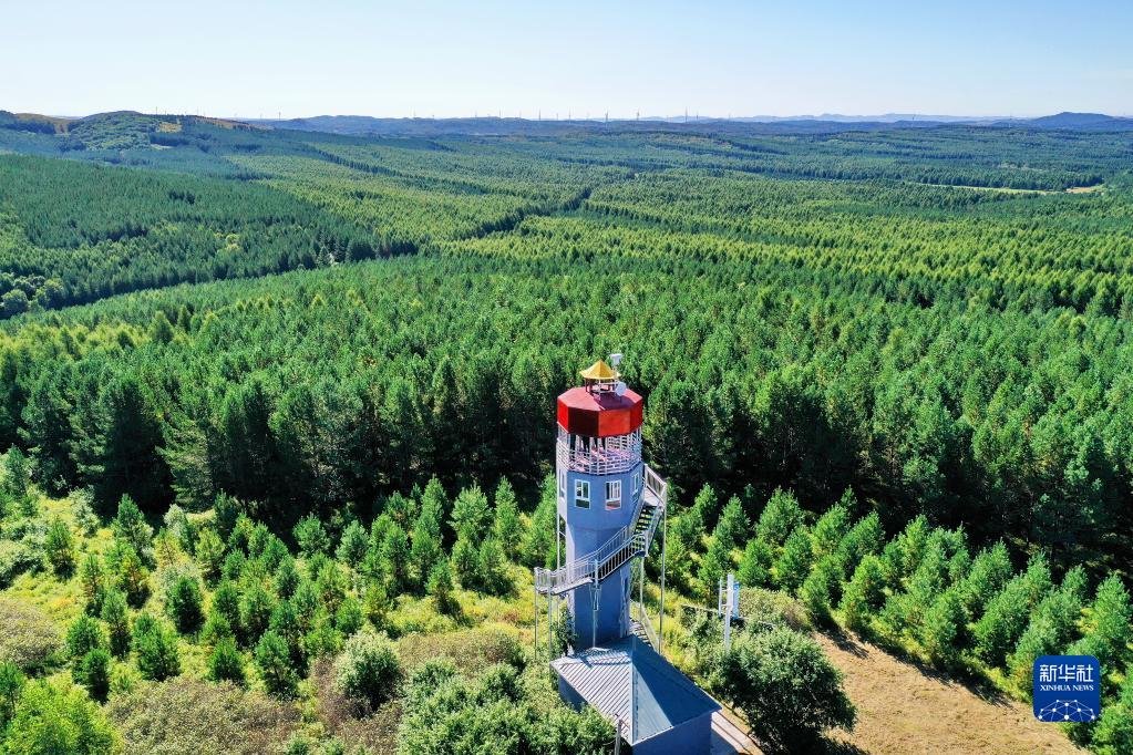 河北塞罕壩機(jī)械林場內(nèi)的望海樓(2021年8月23日攝,無人機(jī)照片)。新華社記者 牟宇 攝