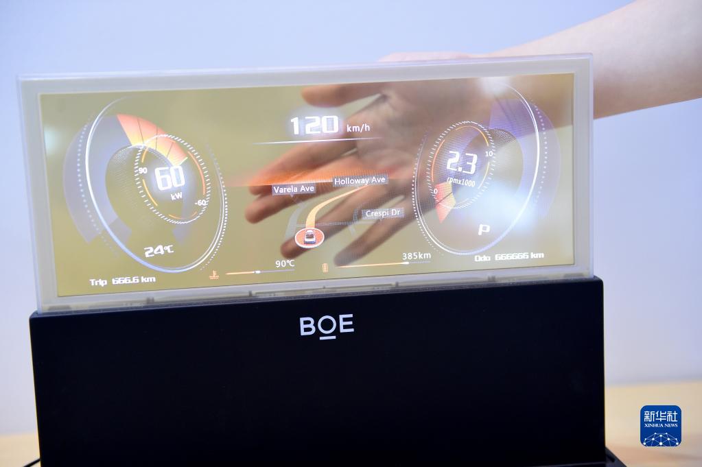 這是2021年6月17日在安徽合肥舉辦的2021世界顯示產(chǎn)業(yè)大會(huì)上拍攝的OLED透明屏幕。新華社記者 黃博涵 攝