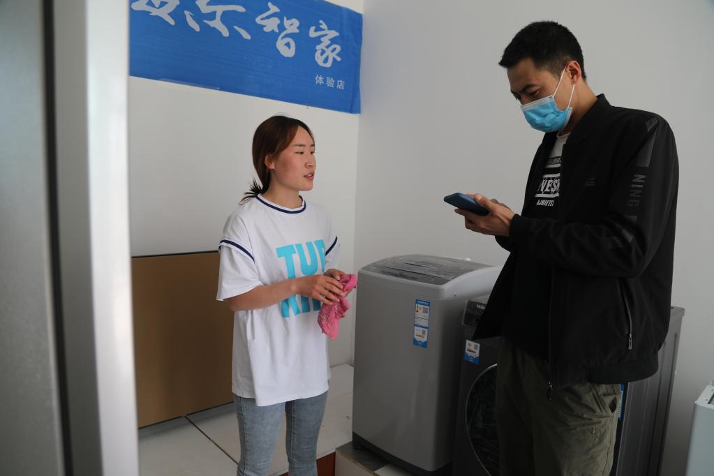去年冬天,劉發(fā)紅從蘭州中川國際機(jī)場花半小時(shí)車程就到了家門口。在幫扶干部的支持下,她的家居店在新康村順利開張。店鋪雖小,沙發(fā)、衣柜、冰箱、電視等家居用品卻一應(yīng)俱全。