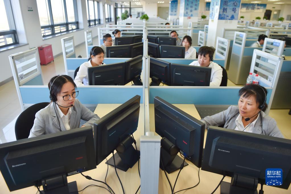 在位于北京經濟技術開發(fā)區(qū)的12345市民熱線話務大廳,工作人員接聽熱線電話(2019年11月13日攝)。新華社記者 彭子洋 攝