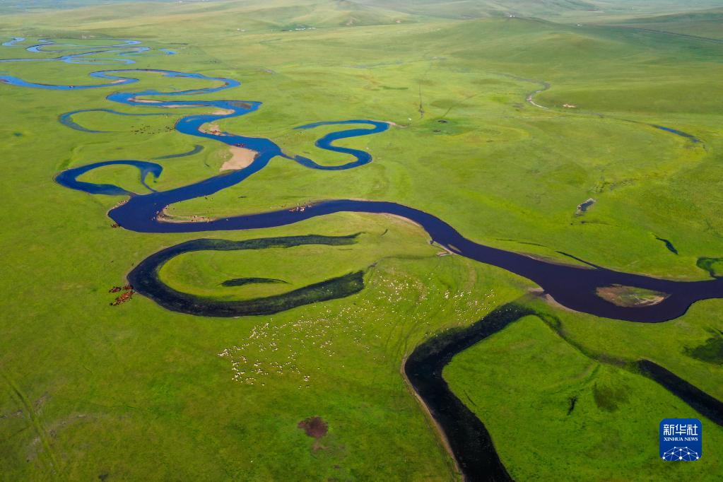 這是位于內蒙古呼倫貝爾市陳巴爾虎旗境內的莫日格勒河(2021年7月21日攝,無人機照片)。新華社記者 連振 攝