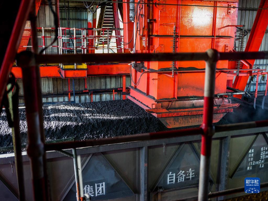 在內蒙古鄂爾多斯市國能神東煤炭洗選中心,煤炭被洗選裝車(2021年12月16日攝)。新華社記者 連振 攝