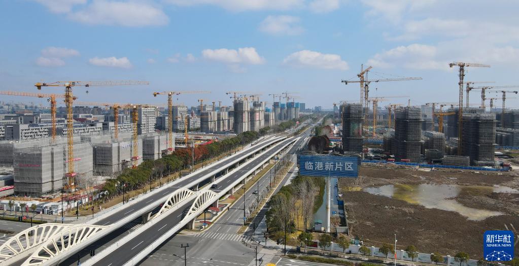 在中國(上海)自由貿(mào)易試驗區(qū)臨港新片區(qū)拍攝的住宅區(qū)建設(shè)現(xiàn)場(2022年2月10日攝,無人機照片)。新華社記者 方喆 攝