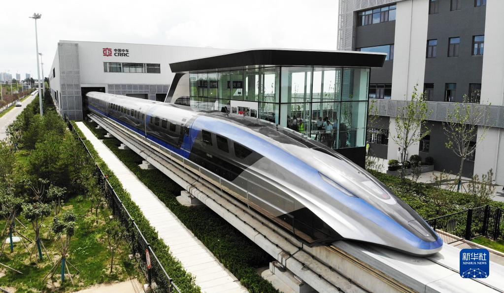 這是在山東青島拍攝的時速600公里高速磁浮交通系統(tǒng)(2021年7月20日攝,無人機(jī)照片)。新華社記者 李紫恒 攝