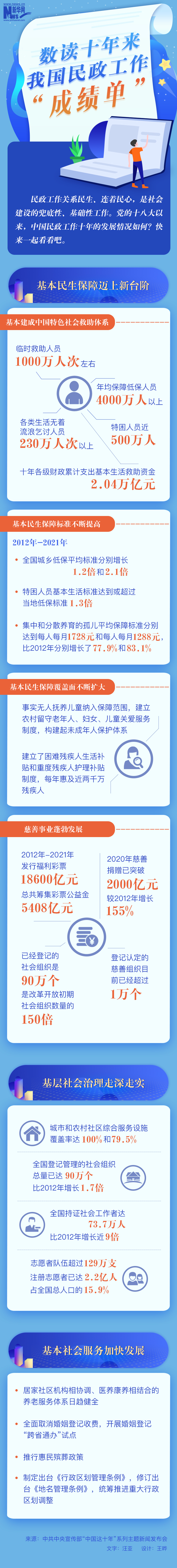 首頁> 綜合專題>奮進(jìn)新征程 建功新時(shí)代>非凡十年 海報(bào)|數(shù)讀十年來我國(guó)民政工作“成績(jī)單” 新華網(wǎng) 2022-09-08 19:56