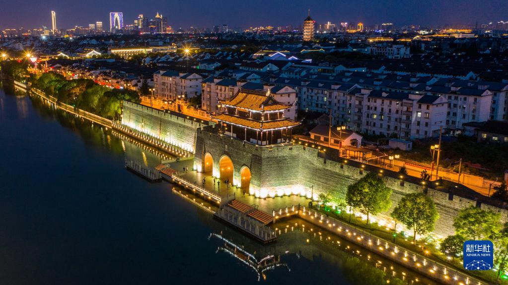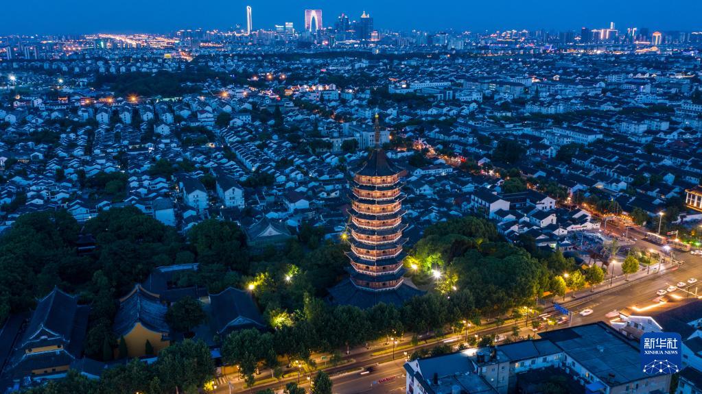 這是2020年8月24日在蘇州姑蘇區(qū)拍攝的城區(qū)夜景(無人機(jī)照片)。 新華社記者 李博 攝