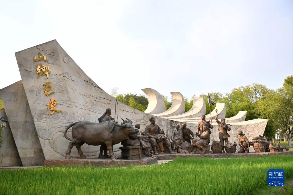 這是湖南省益陽(yáng)市謝林港鎮(zhèn)清溪村清溪廣場(chǎng)上的雕塑作品(2022年9月8日攝)。新華社記者 陳振海 攝