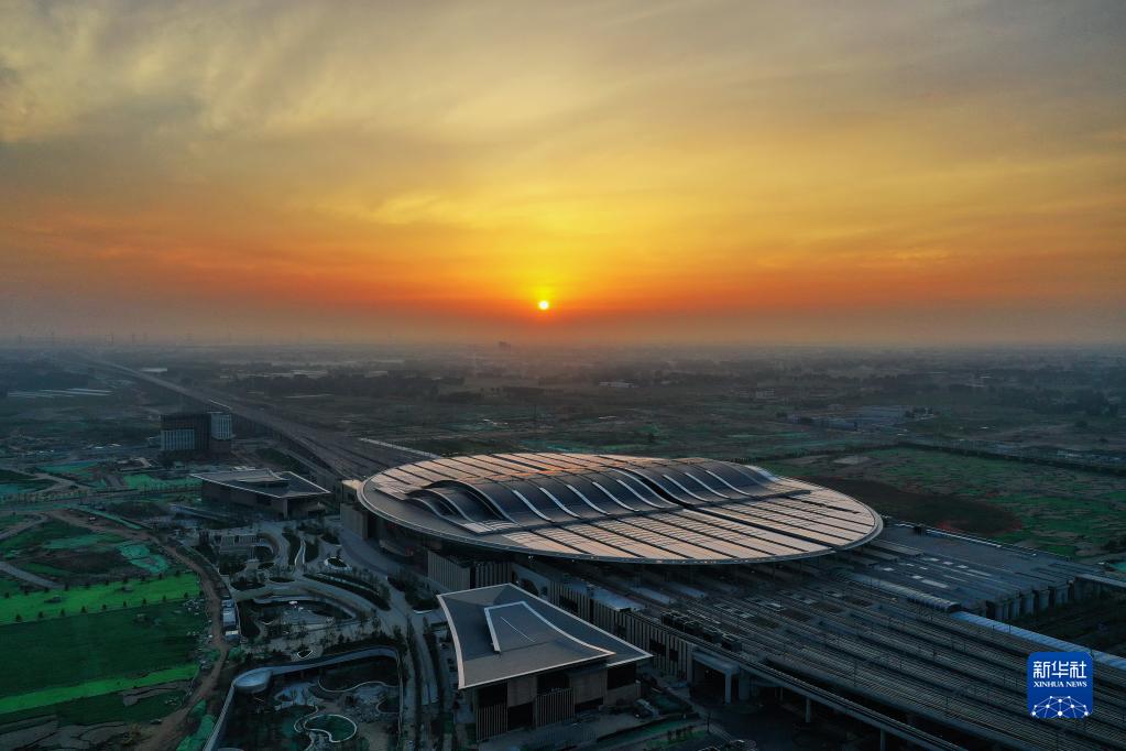 這是京雄城際鐵路雄安站(2021年7月1日攝,無(wú)人機(jī)照片)。新華社記者 牟宇 攝