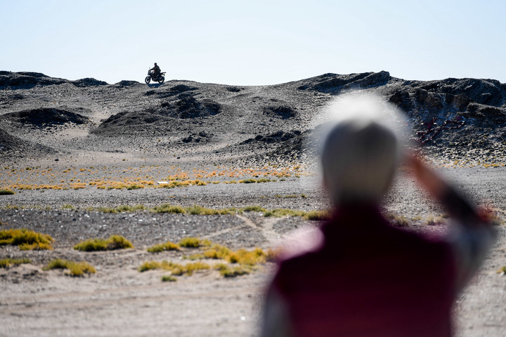 半個世紀前,尼瑪來到這里,默默守護在祖國的邊境線上,像胡楊一樣扎下了根。如今,尼瑪76歲了。這一天,她步履蹣跚地為外出巡邊的兒子哈達布和拿上望遠鏡、水壺,目送兒子騎上摩托車,消失在茫茫戈壁灘上。