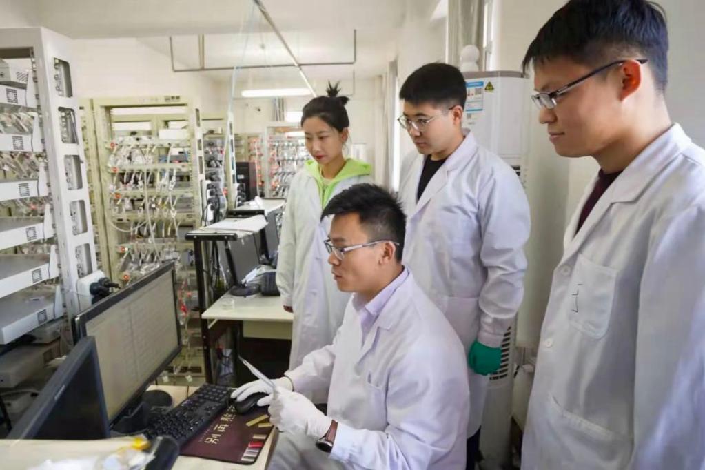 王家鈞(中)帶領(lǐng)學(xué)生們分析實(shí)驗(yàn)結(jié)果。(資料照片)