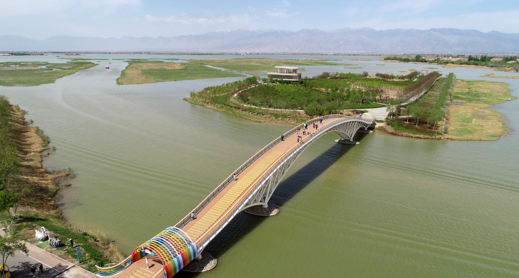 這是4月1日拍攝的沙湖鳥島觀光區(qū)(無人機(jī)照片)。新華社記者馮開華攝