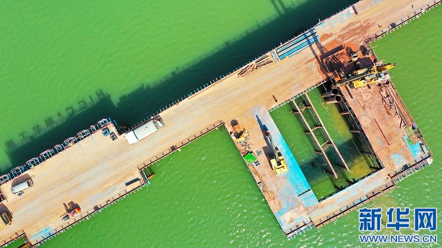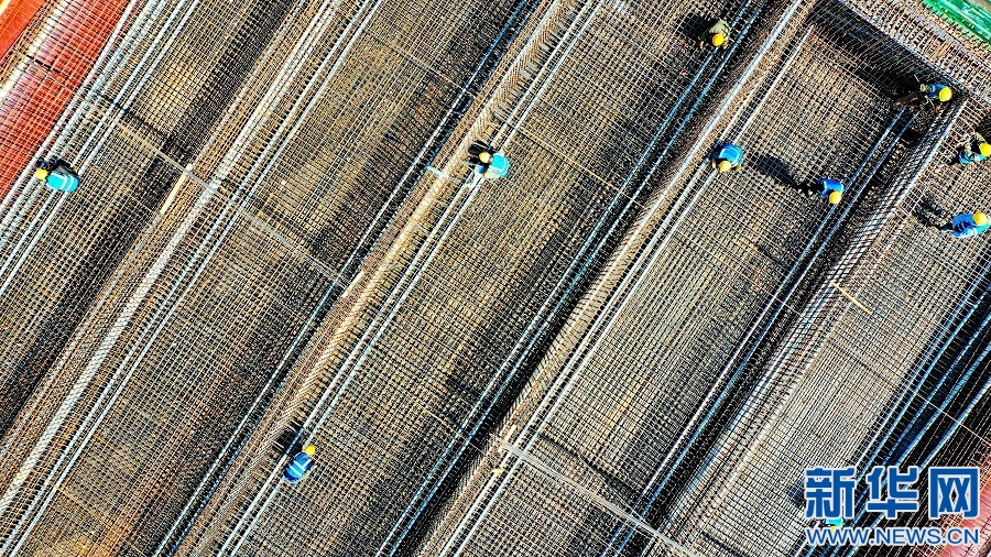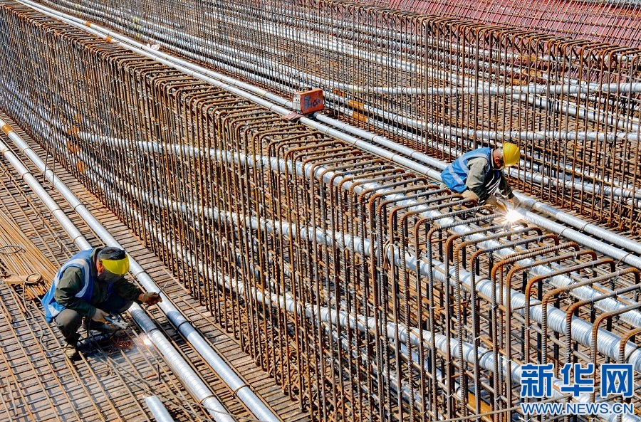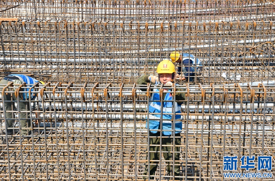 工人忙著綁扎現(xiàn)澆箱梁鋼筋。新華網發(fā) 朱海鵬 攝