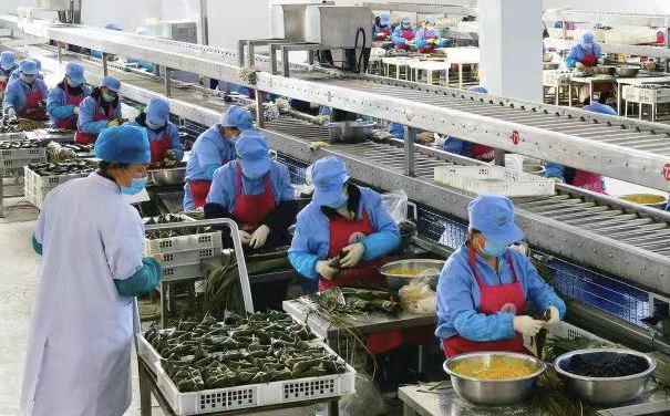 張新勤成為村里“吃螃蟹”的第一批人。他成立了臨縣青塘食品有限公司,采用本地優(yōu)質(zhì)糯米、黃河灘棗和甘甜的青塘水制作粽子,包出的粽子口感香滑、色澤鮮美,逐漸將“青塘粽子”的名號打了出去。