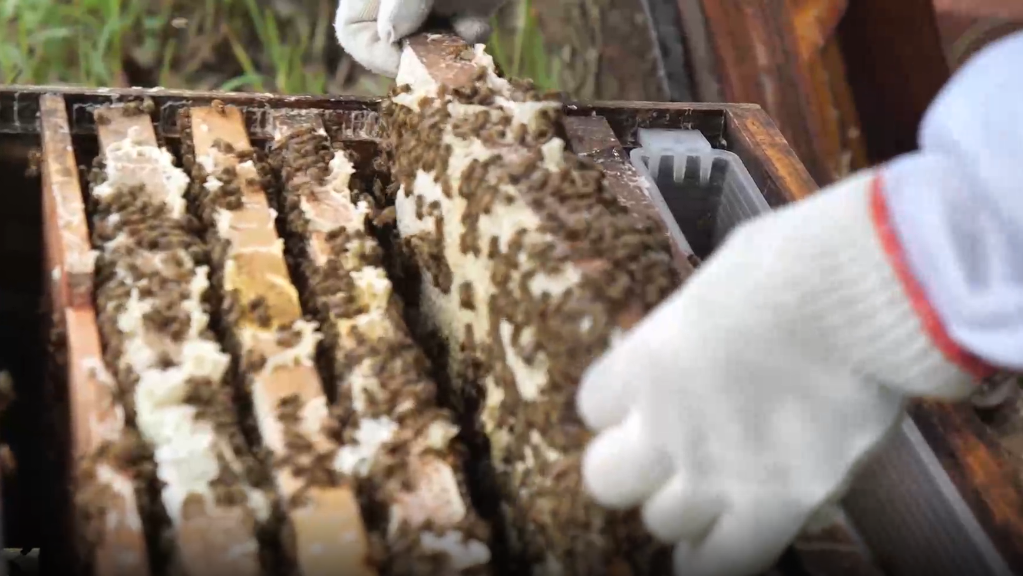 蜂農(nóng)小心地打開蜂箱檢查內(nèi)部情況。(受訪者供圖)
