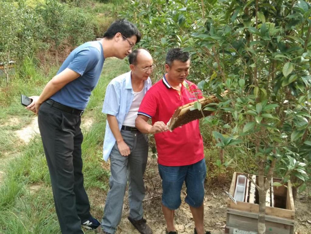 在曲江村,蜂農(nóng)正在觀察蜜蜂養(yǎng)殖情況。(受訪者供圖)