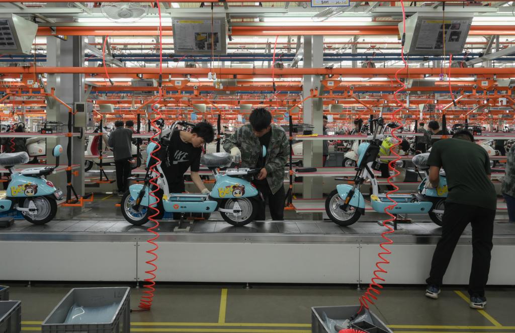 安徽雅迪機(jī)車有限公司生產(chǎn)車間內(nèi),工作人員正在組裝電動機(jī)車。詹楊 攝