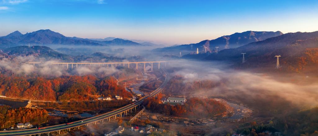 2021年11月20日,在金寨縣斑竹園鎮(zhèn)橋口遠(yuǎn)眺大別山。新華社發(fā)(汪誠(chéng) 攝)