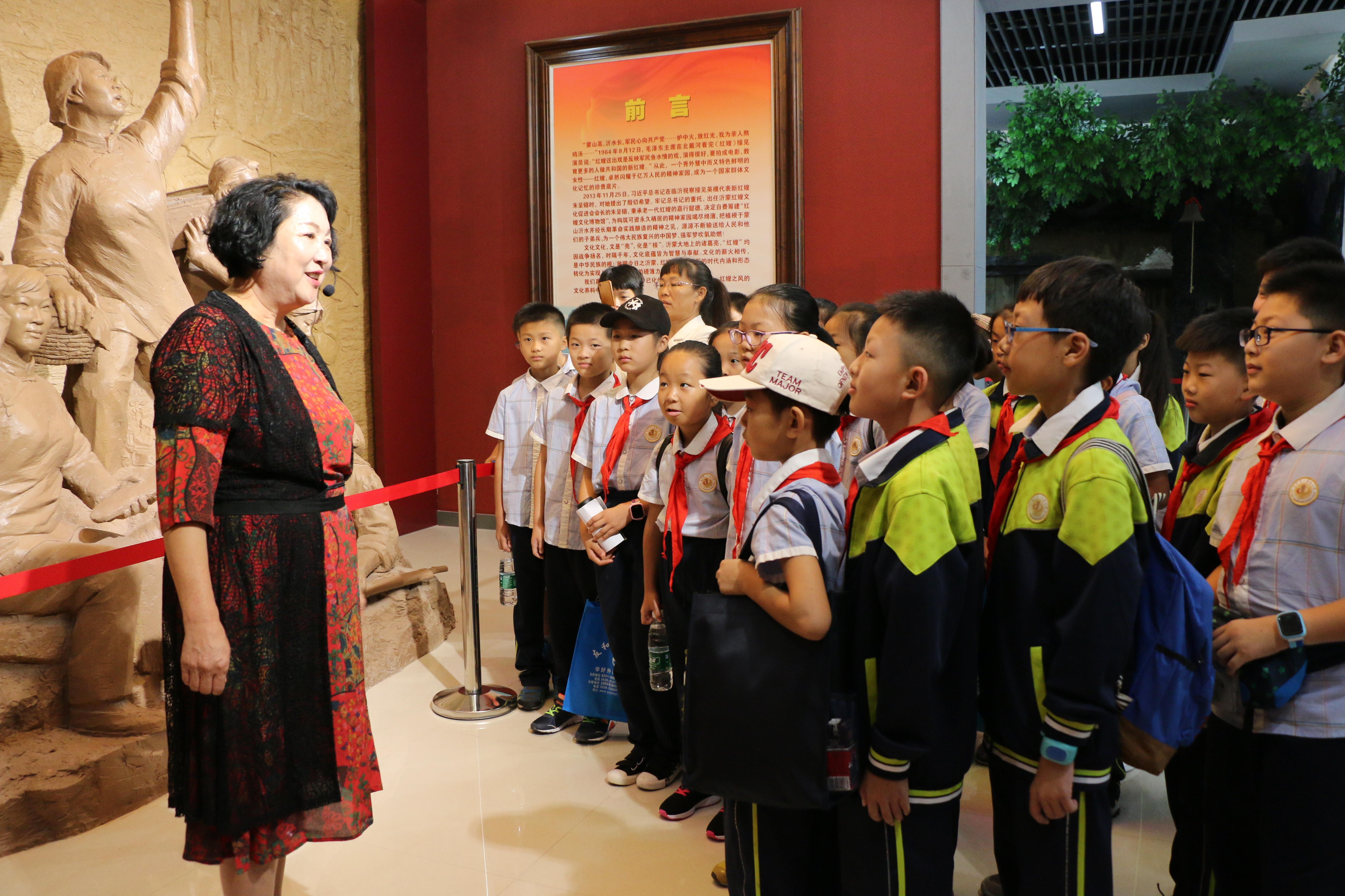 朱呈镕在紅嫂文化博物館接待參觀的小學生。(受訪者供圖)