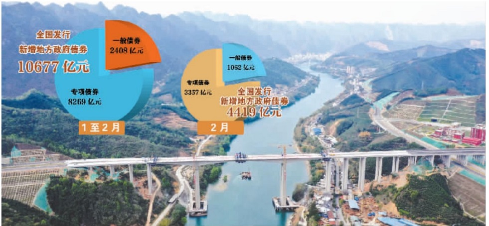 1至2月,全國發(fā)行新增地方政府債券10677億元,其中一般債券2408億元、專項債券8269億元。全國發(fā)行地方政府債券合計12196億元,其中一般債券3367億元、專項債券8829億元。