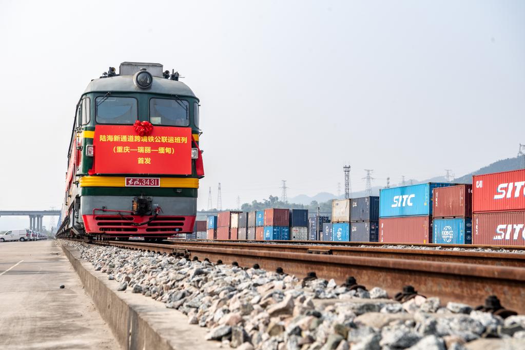 4月3日,陸海新通道跨境鐵公聯(lián)運班列(重慶—瑞麗—緬甸)首發(fā)班列在重慶江津小南埡鐵路物流中心等候發(fā)車。新華社記者唐奕 攝