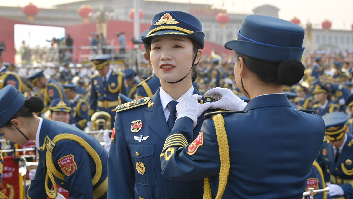 10月1日上午,慶祝中華人民共和國(guó)成立70周年大會(huì)將在北京天安門(mén)廣場(chǎng)隆重舉行。這是解放軍聯(lián)合軍樂(lè)團(tuán)為演奏做準(zhǔn)備。 新華社記者 劉潺 攝