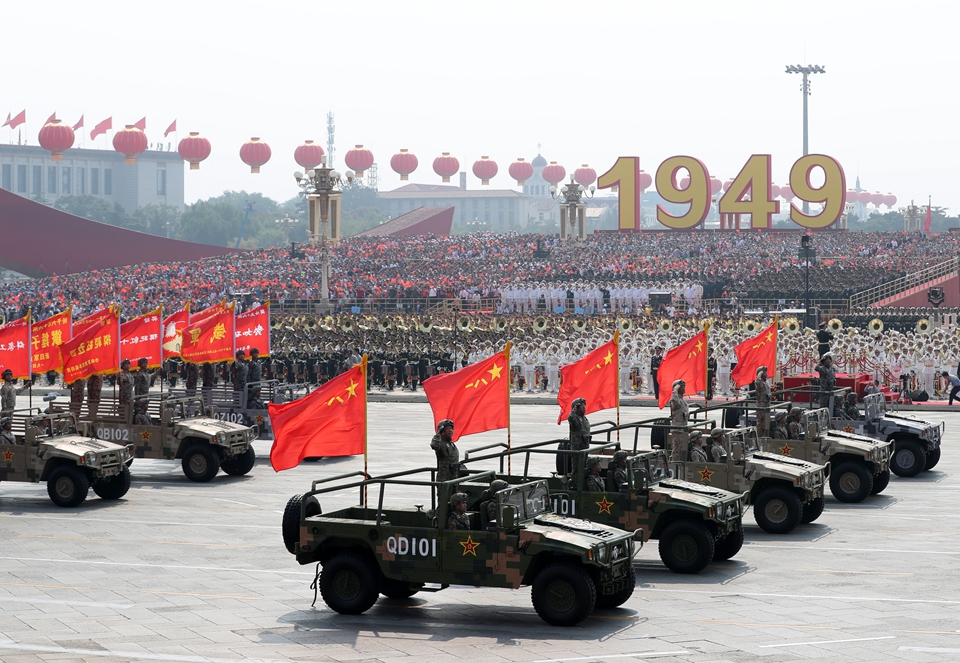 10月1日上午,慶祝中華人民共和國成立70周年大會在北京天安門廣場隆重舉行。這是戰(zhàn)旗方隊接受檢閱。新華社記者 殷剛 攝
