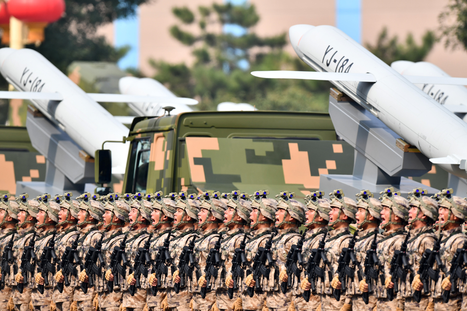 10月1日上午,慶祝中華人民共和國成立70周年大會在北京天安門廣場隆重舉行。這是受閱部隊接受檢閱。新華社記者 張宏祥 攝