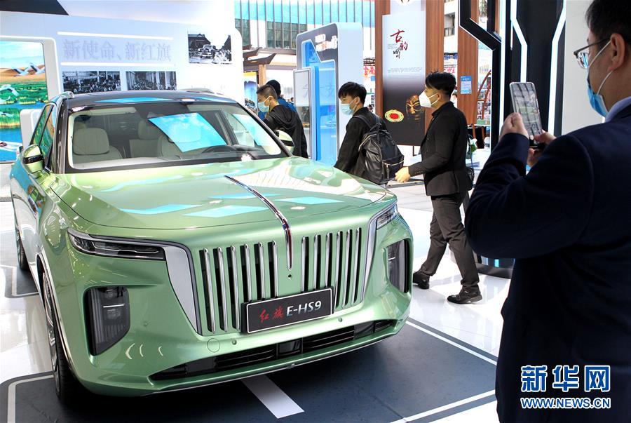 11月5日,參觀者在吉林綜合館觀看國(guó)產(chǎn)紅旗E-HS9純電動(dòng)汽車。 第三屆中國(guó)國(guó)際進(jìn)口博覽會(huì)設(shè)置了精彩紛呈的人文展示項(xiàng)目,幫助參加進(jìn)博會(huì)的國(guó)內(nèi)外客商了解中國(guó)地方文化特色,促進(jìn)人文交流。 新華社記者 陳飛 攝