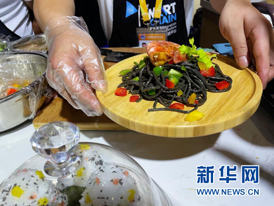 剛剛制作完成的墨魚面。 新華網 佘靈 攝