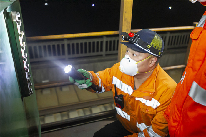 ↑1月9日,完成打磨作業(yè)后,鐵路員工檢查車身打磨元件的情況。新華社記者 方喆 攝
