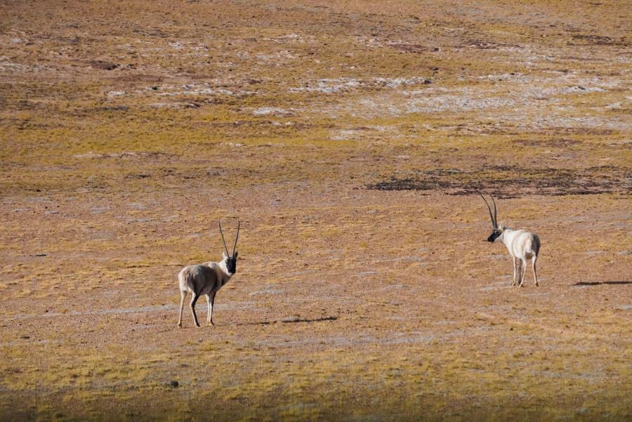 羌塘草原上的2只藏羚羊(2021年1月15攝)。 新華社記者 翟永冠 攝