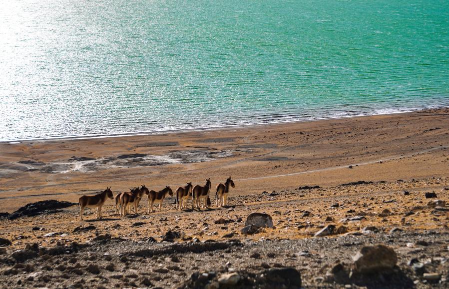 西藏羌塘國家級自然保護(hù)區(qū)內(nèi)的藏野驢(2021年2月3日攝) 新華社記者 田金文 攝