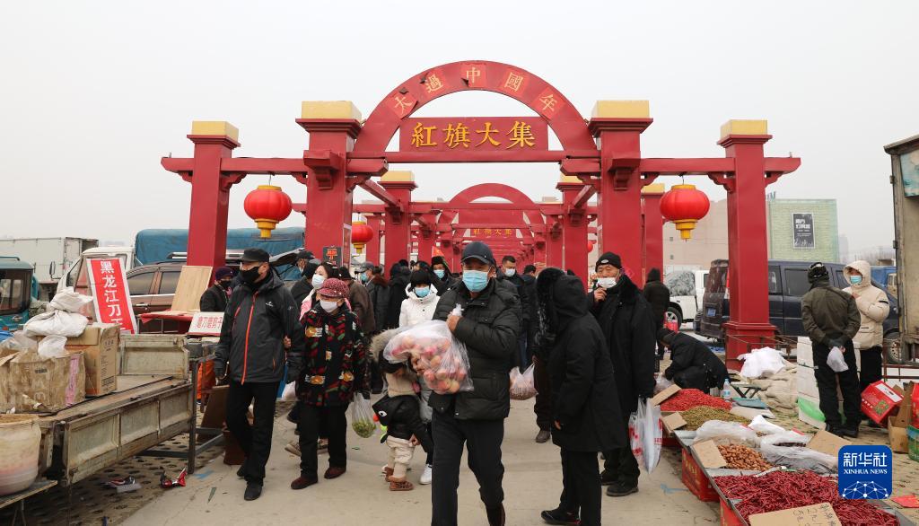 1月15日,在遼寧省營(yíng)口市紅旗大集,村民在集市上采購(gòu)年貨。新華社記者 趙泳 攝