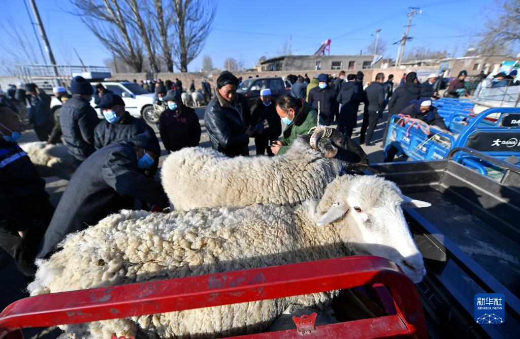 1月17日,村民在寧夏銀川市賀蘭縣金貴集市上選購(gòu)活羊。新華社發(fā)(李靖 攝)