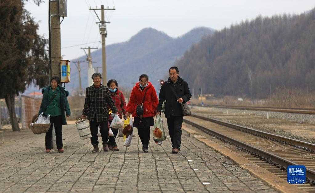 1月15日,在遼寧省鳳城市石城站,農(nóng)民帶著各種山貨準(zhǔn)備上車(chē)。新華社記者 楊青 攝