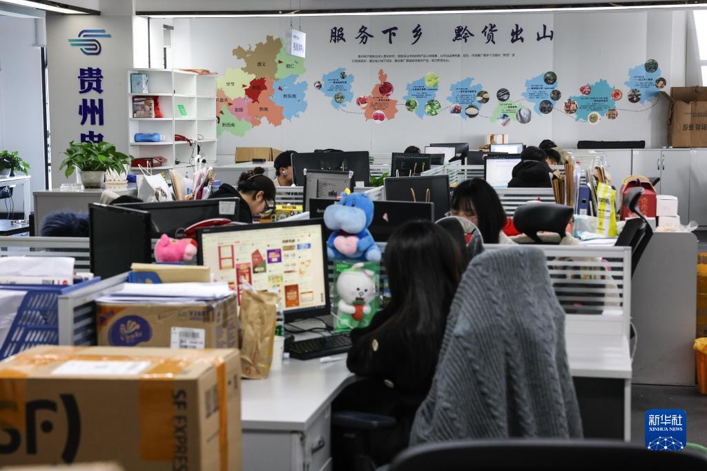 1月18日,工作人員在“一碼貴州”智慧商務(wù)大數(shù)據(jù)平臺(tái)工作。新華社記者 歐東衢 攝