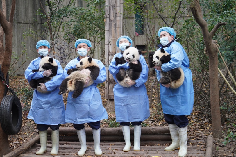 成都大熊貓繁育研究基地2021級(jí)熊貓寶寶通過網(wǎng)絡(luò)“云亮相”的方式,慶祝北京冬奧會(huì)圓滿舉行。 (成都大熊貓繁育研究基地供圖)