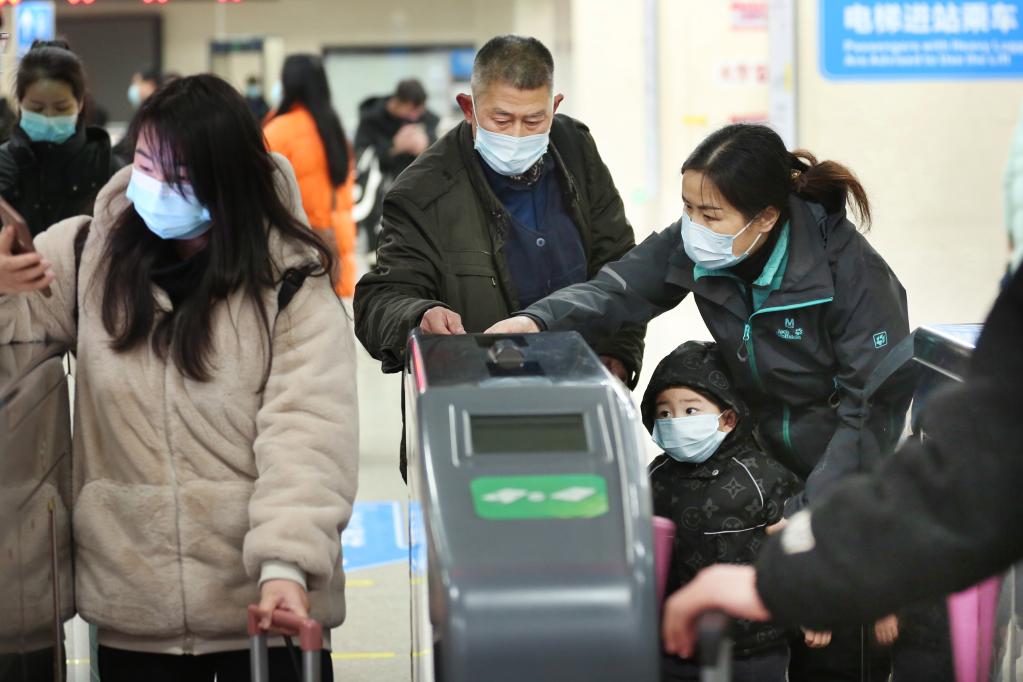姚婕正在幫助小朋友和老年人進(jìn)站。 新華社發(fā)(產(chǎn)啟斗 攝)