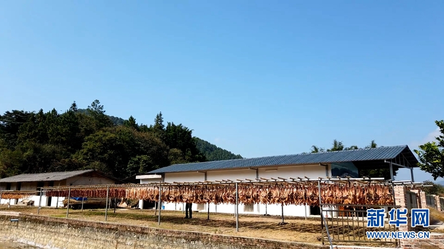 隨著春節(jié)臨近,在廣州市北部山區(qū)呂田鎮(zhèn),不少村民會于自家房前屋后生曬臘味。新華網(wǎng)發(fā)(胡東和 攝)