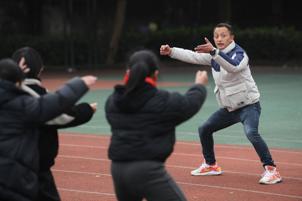 ↑1月21日,在前童鎮(zhèn)中心小學(xué),童攀峰帶領(lǐng)學(xué)生們開(kāi)展舞獅基本動(dòng)作訓(xùn)練。