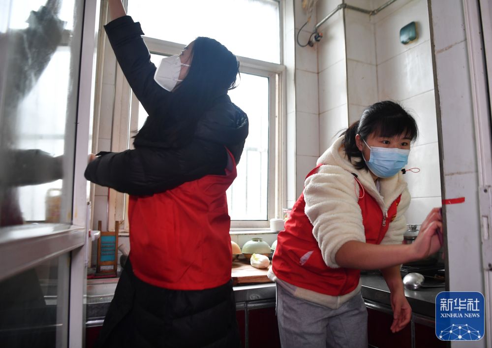 ↑1月27日,志愿者為西安市鄠邑區(qū)幸福佳苑社區(qū)的困難群眾義務(wù)打掃衛(wèi)生。