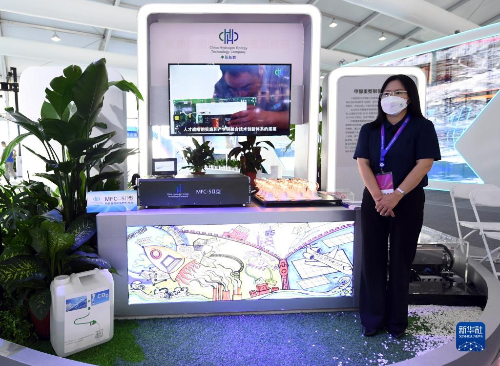 9月27日在2021中關(guān)村論壇展覽(科博會(huì))現(xiàn)場(chǎng)拍攝的一家新能源企業(yè)展臺(tái)。 新華社記者 任超 攝